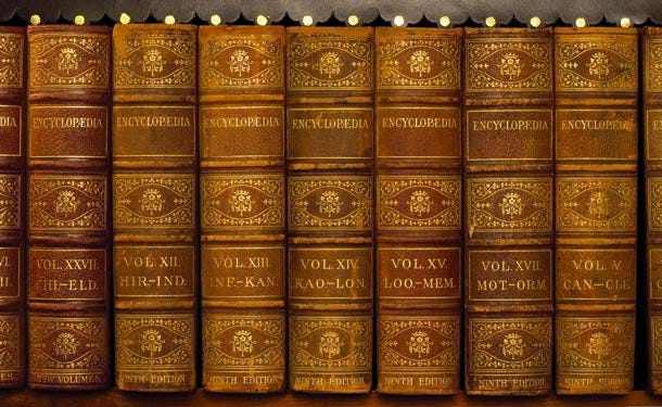 Alas, the internet is also littered with abandoned efforts to fully focus all of the knowledge of a given field into one compendious volume. Truly, the age of the encyclopedia has passed.