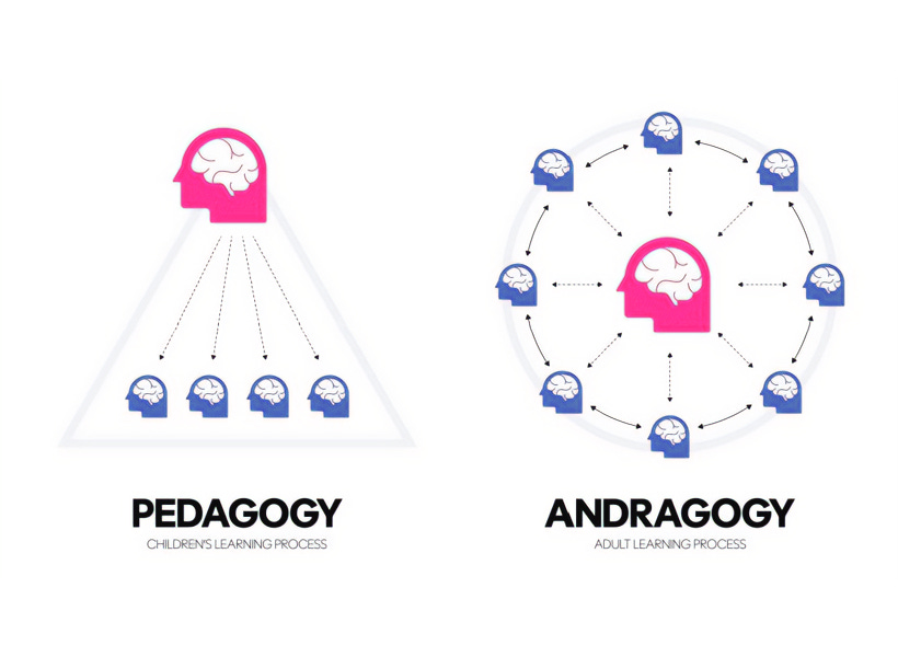 andragogy (noun) - the art and science of helping adults learn; education practices designed for adults rather than children [an-druh-goh-jee]
