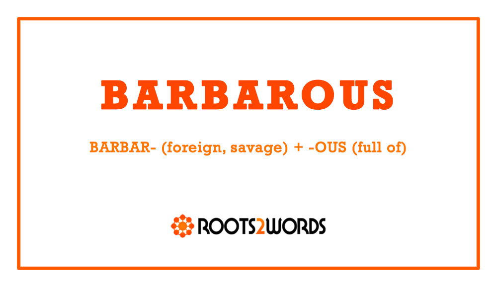 BREAKDOWN: BARBAR- (foreign, savage) + -OUS (full of)