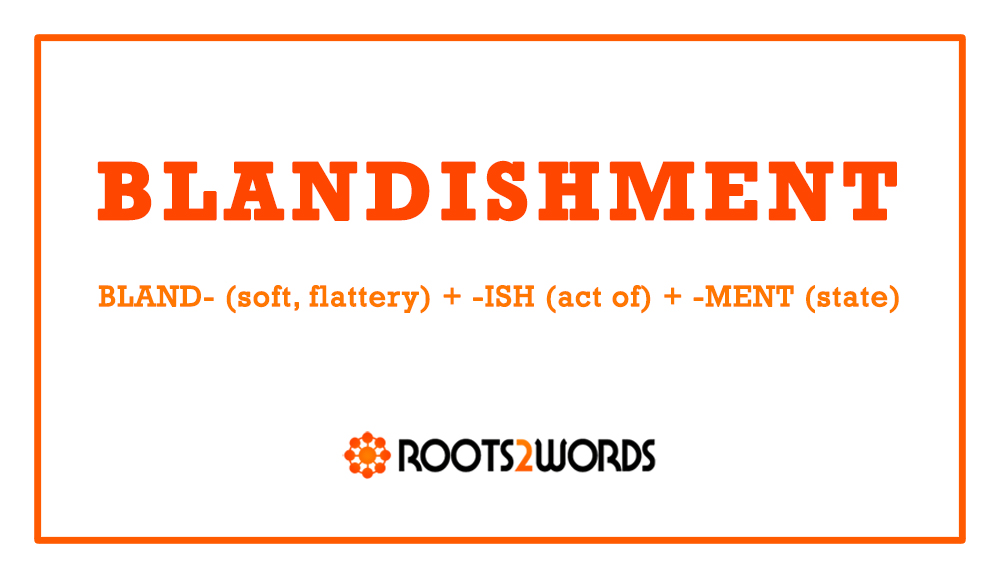 BREAKDOWN: BLAND- (soft, flattery) + -ISH (act of) + -MENT (state)