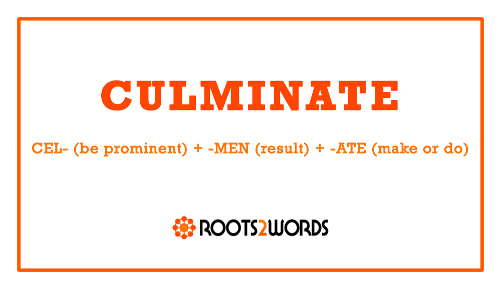 culminate (verb) - to reach a peak, climax, or final result [kuhl-muh-neyt]