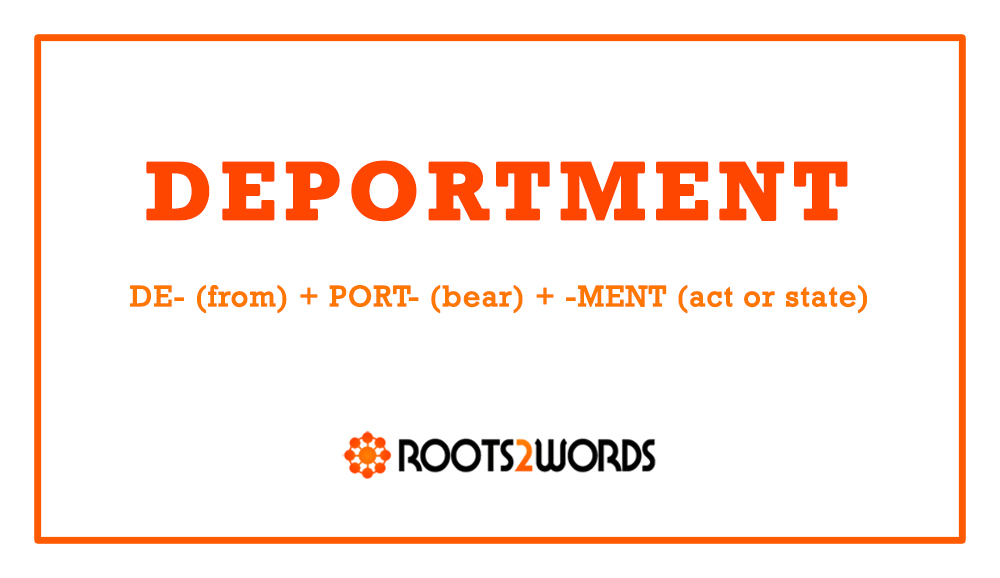 BREAKDOWN: DE- (from) + PORT- (bear) + -MENT (act or state)
