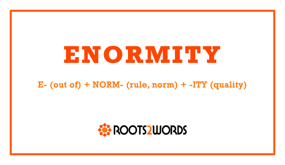 BREAKDOWN: E- (out of) + NORM- (rule, norm) + -ITY (quality)