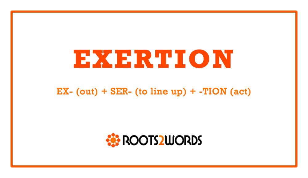 BREAKDOWN: EX- (out) + SER- (to line up) + -TION (act)