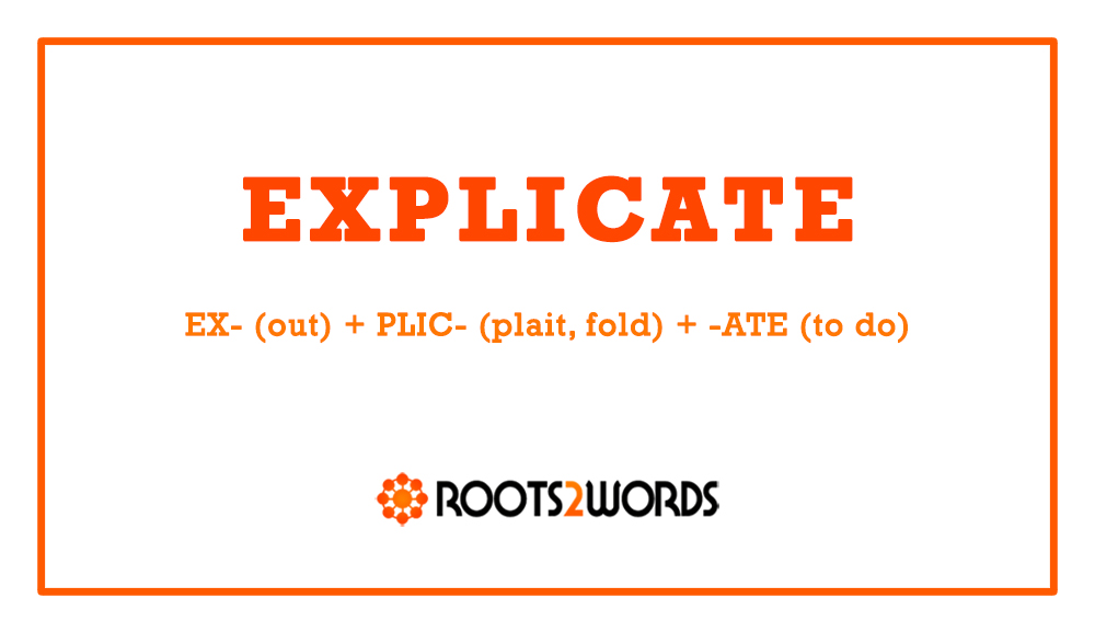 BREAKDOWN: EX- (out) + PLIC- (plait, fold) + -ATE (to do)
