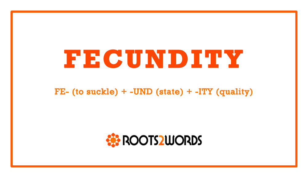 BREAKDOWN: FE- (to suckle) + -UND (state) + -ITY (quality)