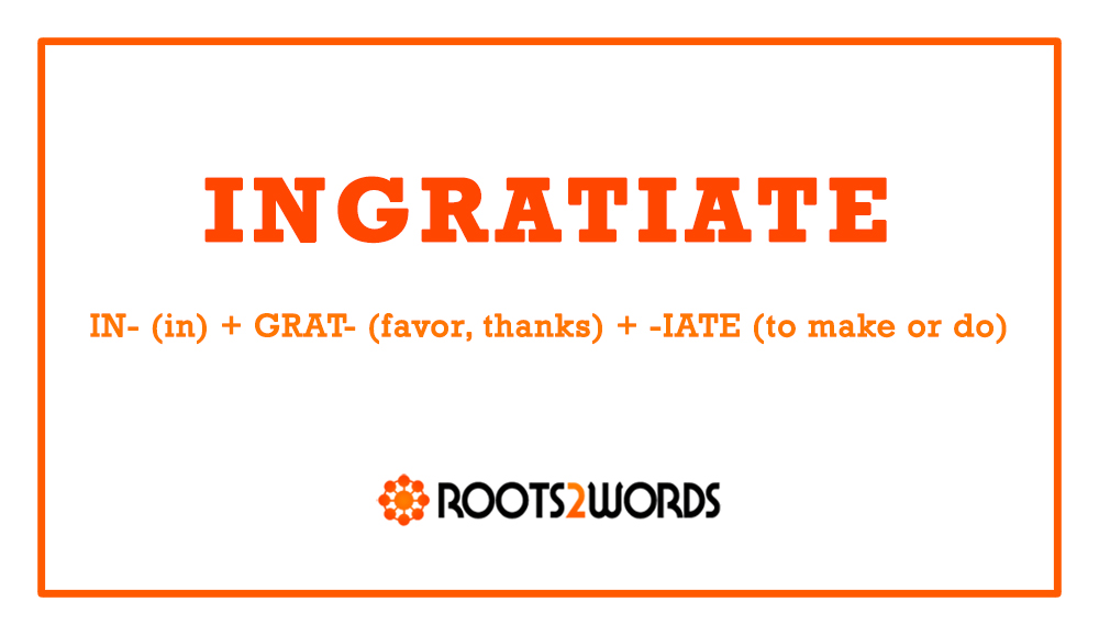 BREAKDOWN: IN- (in) + GRAT- (favor, thanks) + -IATE (to make or do)