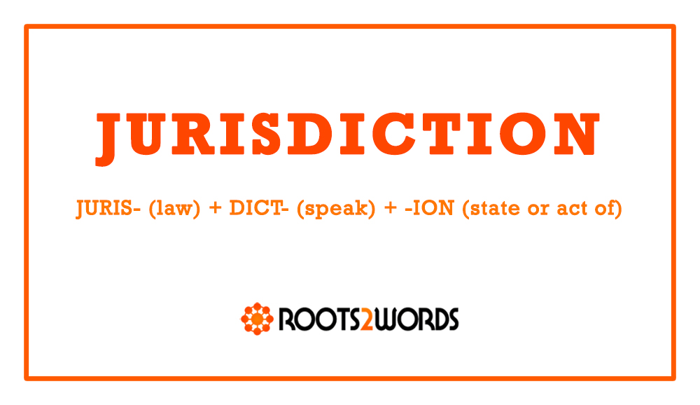 BREAKDOWN: JURIS- (law) + DICT- (speak) + -ION (state or act of)