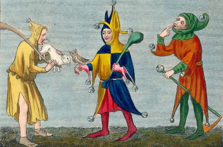 “The clown knows that life is cruel. The ancient jester’s motley colored costume turned his usually melancholy expression in to a joke. The clown is used to loss. Loss is his prologue.” —John Berger