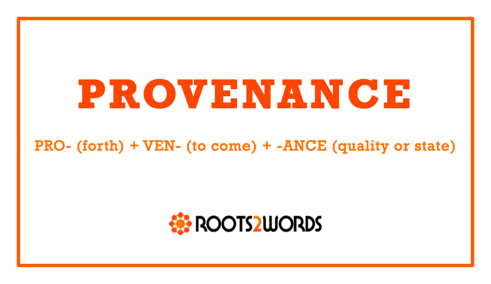 PRO- (forth) + VEN- (to come) gives us a word that literally means 'the coming forth' — the origin story. What I find interesting is how provenance has become specifically associated with art authentication. The story of where something came from became synonymous with whether it's legitimate.