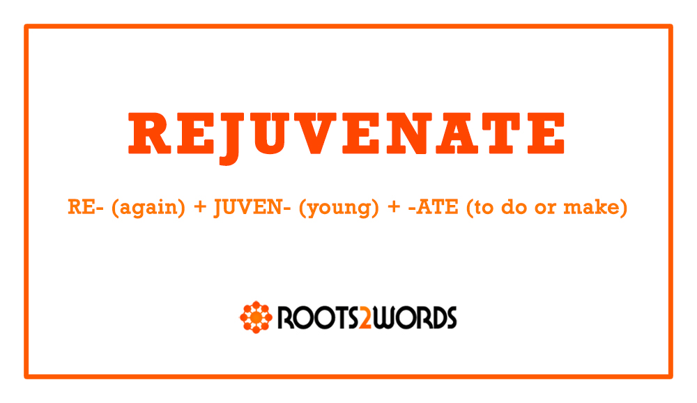 BREAKDOWN: RE- (again) + JUVEN- (young) + -ATE (to do or make)
